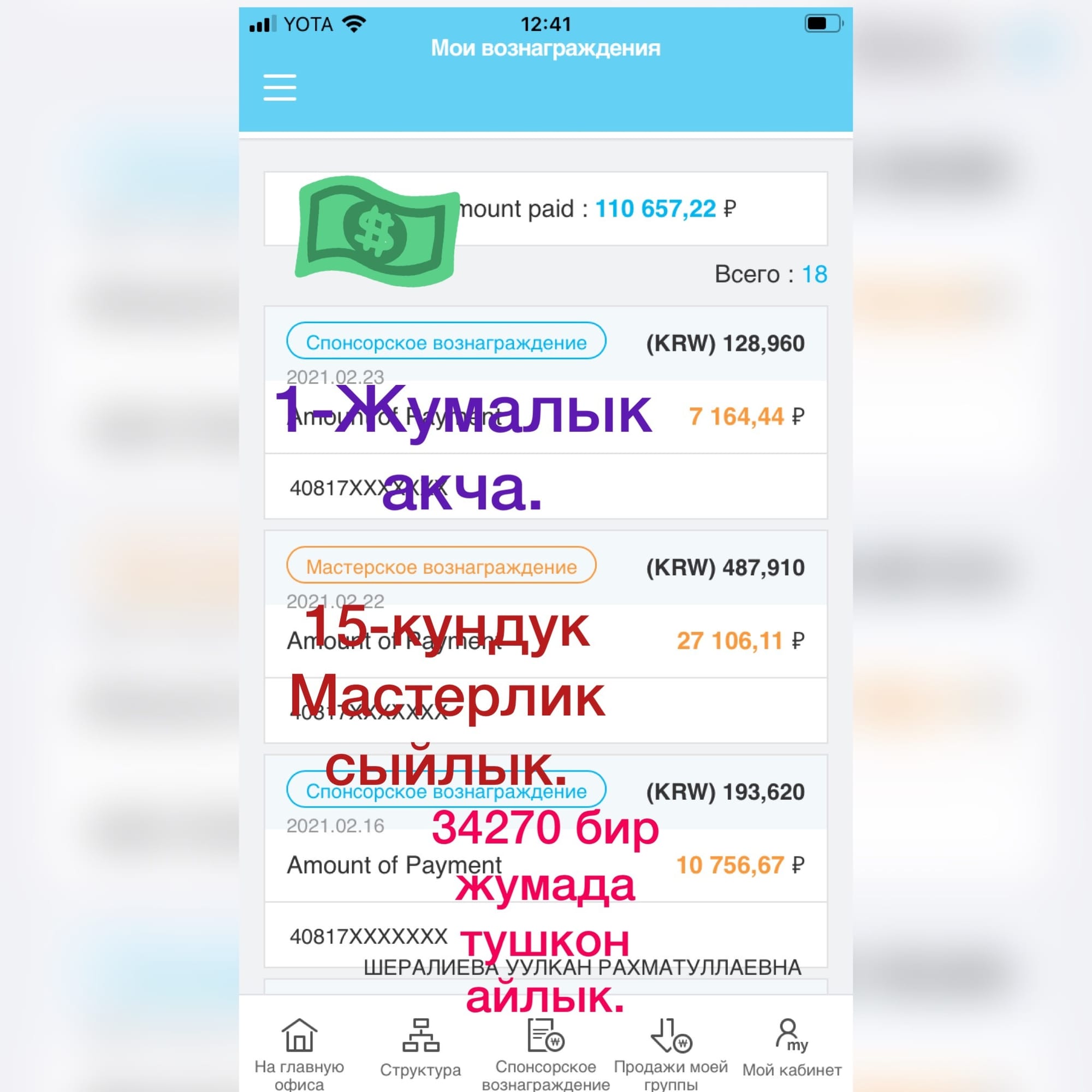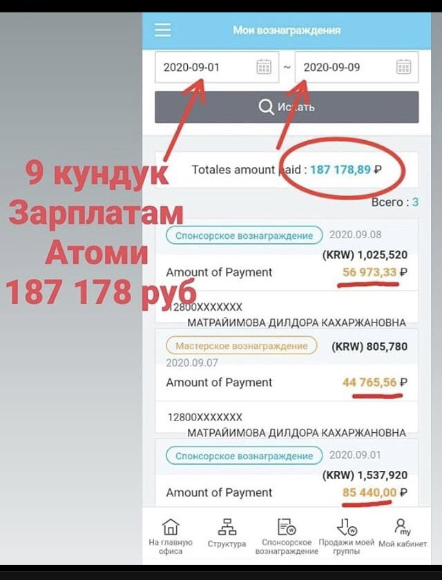 Продолжаем нашу рубрику ПРО БИЗНЕС С АТОМИ! И сегодня мы разберемся сколько же можно зарабатывать в компании? Какие есть перспективы у участников интернет - магазина!? 🌟🌟🌟 Компания Атоми – это реально действующая платформа для ведения бизнеса, которая позволяет каждому расти, развиваться и зарабатывать. 🌐 Единый сервер компании ежедневно высчитывает коэффициент на основании товарооборота Атоми за день и выводит точную сумму. 💸 После того как вознаграждение было начислено, групповые PV обнуляются, а личные продолжают накапливаться дальше. 🙏Личные баллы никогда не сгорают вообще 💯💯💯 💰Спонсорские вознаграждения выплачиваются раз в неделю по вторникам за всю неделю, предшествующую предыдущей.⠀ 📌МАСТЕРСКОЕ ВОЗНАГРАЖДЕНИЕ 📌 В Атоми помимо спонсорских предусмотрены ещё мастерские вознаграждения. 👤 Каждый мастер имеет право на получение вознаграждения – определенный процент от всего мирового товарооборота компании Атоми, начиная от 25000 рублей у мастера продаж и далее по нарастающей от уровня к уровню. 🥁🥁🥁 Мастерское вознаграждение выплачивается два раза в месяц : 7-ого и 22- ого числа !!! МАСТЕРСКИЕ ВОЗНАГРАЖДЕНИЯ - это выплаты за достижение квалификационных званий. Всего 7 квалификаций (рангов): 1- Первый ранг – это: 🌹🌹🌹🌹🌹🌹🌹🌹🌹🌹 МАСТЕР ПРОДАЖ Он присваивается, когда товарооборот по каждой ветке достигает 2,5 млн. PV за две недели: с 1-го по 15-е или с 16-го до конца месяца. ( тут, как мы видим, есть сроки ). Выплата мастерских вознаграждений 2 раза в месяц – по результатам каждого 2-х недельного квалификационного периода. МАСТЕР ПРОДАЖ получает вознаграждения: 1) Спонсорское (при таком товарообороте это примерно 8-9 степов за 2 недели – это примерно 30 тыс. руб.) + 2) Мастерское вознаграждение – премия примерно 25-30 тыс.руб. + 3) Подарки: - Вечерний сет (2400 руб.) + Хемохим (7000 руб.) + набор по уходу за лицом Фейм (7000 руб.) = 16400 руб. Итого: зарплата Мастера Продаж за месяц от 100 тыс.руб. Звание Мастер Продаж остается с вами навсегда! *Мастерское вознаграждение выплачивается КАЖДЫЙ РАЗ при каждом подтверждении звания. Каких-то сроков или других условий для подтверждения званий нет. Если у вас грамотно построены ветки, и вы помогаете своим партнерам, ваш товарооборот будет стабильным, и вы будете получать свои мастерские вознаграждения каждые две недели. Это называется МАСТЕР АВТОМАТИЧЕСКИХ ПРОДАЖ. 2- Второй ранг – это 💎💎💎💎💎💎💎💎💎💎 БРИЛЛИАНТОВЫЙ МАСТЕР Этот ранг присваивается, когда в каждой вашей ветке вырастают по 2 Мастера Продаж. Бриллиантовый мастер получает вознаграждения: 1) Спонсорское + 2) Мастерское вознаграждение – премия примерно 50 тыс.руб. + 3) Подарки: - Вечерний сет (2400 руб.) + Хемохим (7000 руб.) + набор по уходу за лицом Фейм (7000 руб.) + ноутбук или планшет на выбор. Итого: зарплата Бриллиантового мастера за месяц от 200 тыс.руб. 3 ранг – МАСТЕР ШАРОНСКОЙ РОЗЫ 🌸🌸🌸🌸🌸🌸🌸 Этот ранг присваивается, когда в каждой вашей ветке вырастают по 2 бриллиантовых мастера Вознаграждения: Путешествие на двоих (3н/4дн), денежное вознаграждение в размере 110 тыс. руб. Зарплата мастера Шаронской Розы за месяц от 10 тыс.$ 4 ранг – СТАР (звездный) МАСТЕР ⭐⭐⭐⭐⭐⭐⭐ Этот ранг присваивается, когда в каждой вашей ветке вырастают по 2 мастера Шаронской розы Вознаграждения: Путешествие на четверых (3н/4дн), денежное вознаграждение в размере 550 тыс. руб.